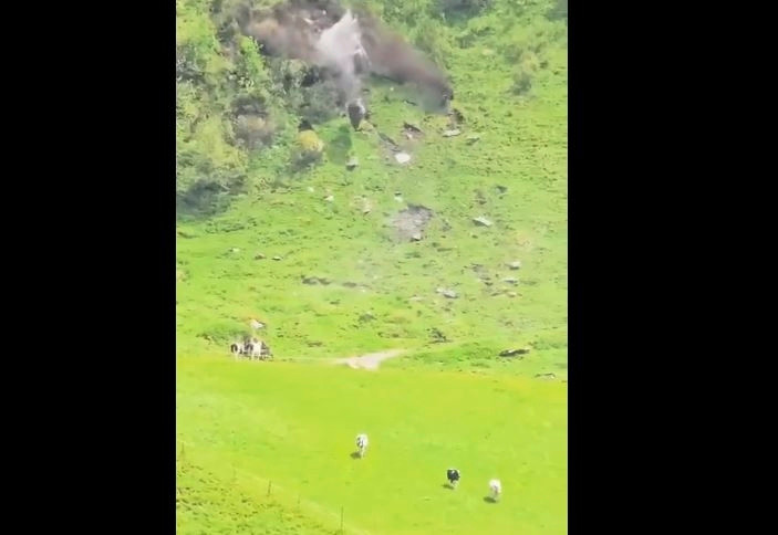 Auf Videos in den sozialen Medien ist zu sehen, wie sich aus einer Felswand grössere Steinblöcke lösen und anschliessend mit grosser Geschwindigkeit zu Tal rasen. Durch die Wucht der Gesteinsmassen wird viel Staub aufgewirbelt, Bäume werden umgeknickt.