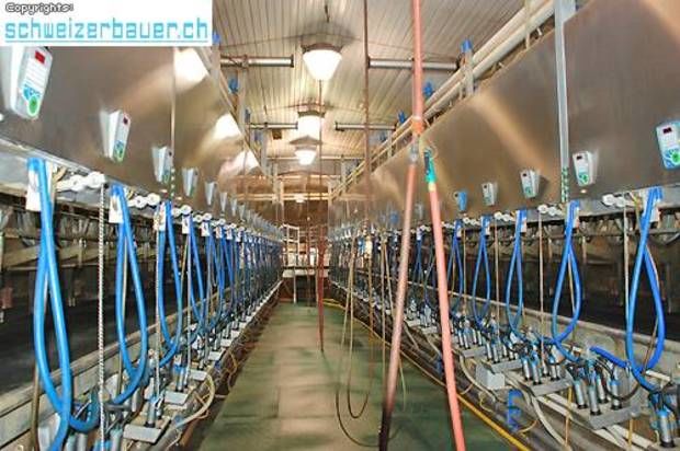 Vor dem Melken betreten die Kühe diesen Warteraum, der mit den verschiedenen Ställen verbunden ist.