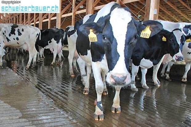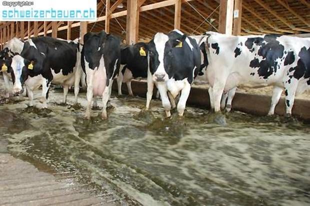 Das Schwemmen der Laufgänge scheint die Kühe nicht gross zu stören.