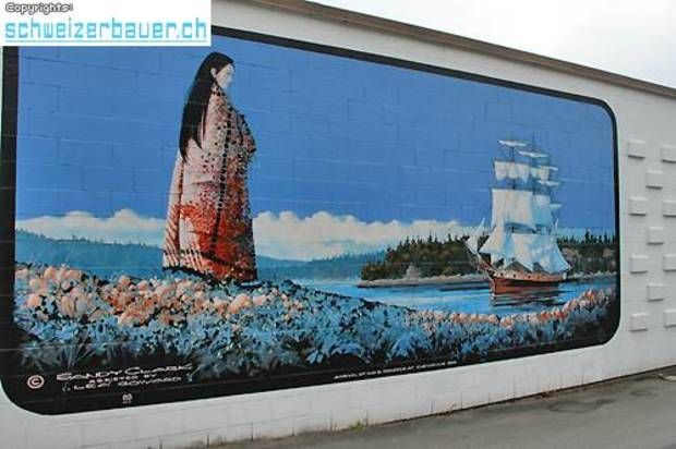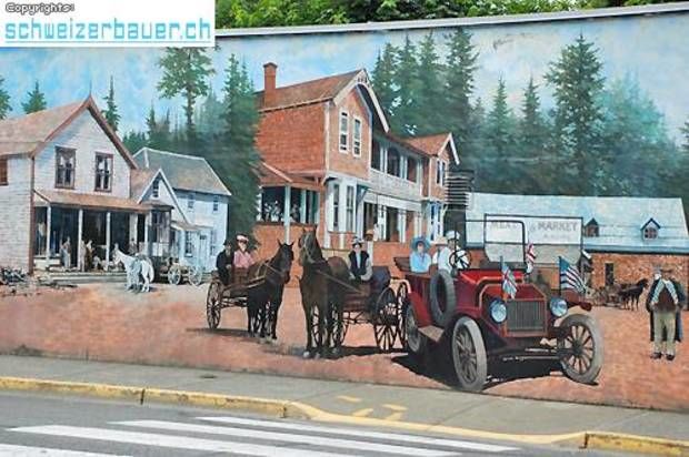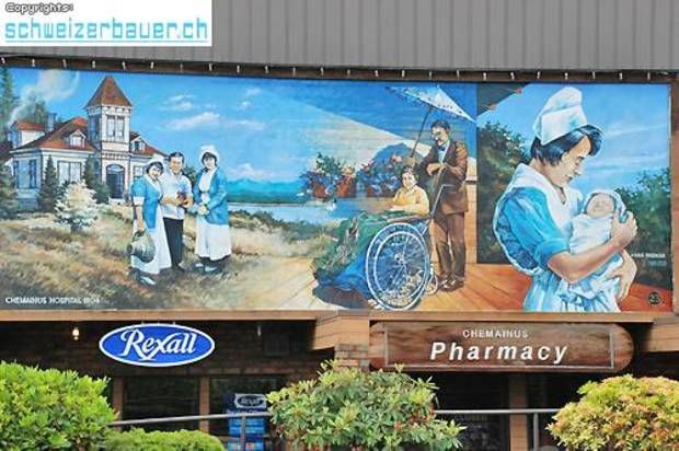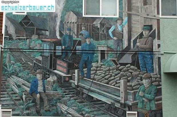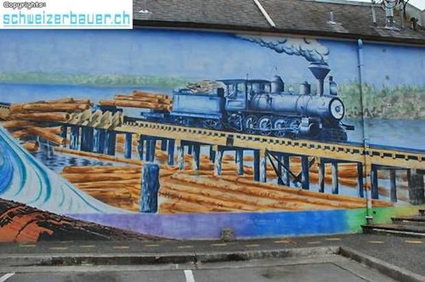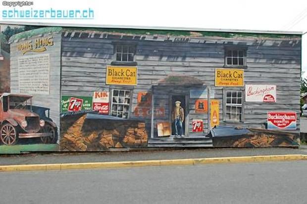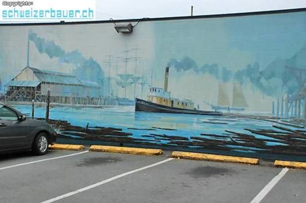 Der durch die Schliessung der Kohleindustrie und die Übernutzung der Waldbestände entstandene wirtschaftliche Niedergang im Ort Chemainus wird durch eindrucksvolle Wandmalereien dokumentiert. 1983 wurde das Sägewerk geschlossen die Einwohner fürchteten um ihre Existenz. Künstler vom ganzen Land nach Chemainus und malten die Geschichte des Ortes an die Fassaden der Häuser. Bilder: Reto Blunier