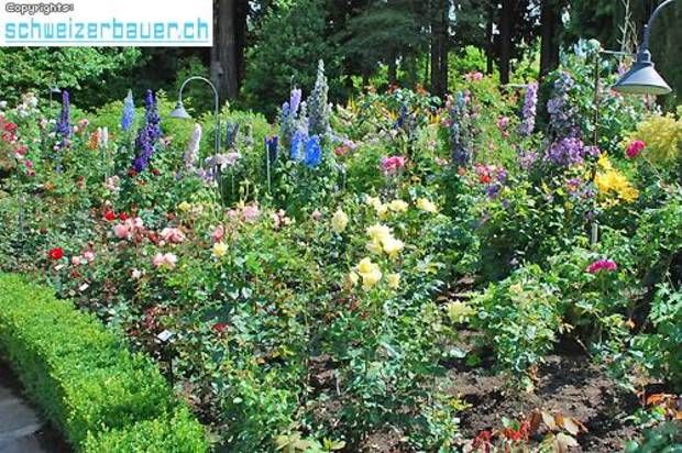 Zur Anlage gehört auch ein Rosengarten mit Stöcke aus aller Welt.