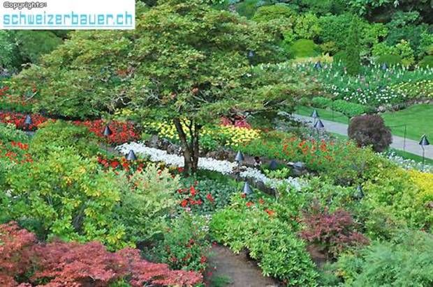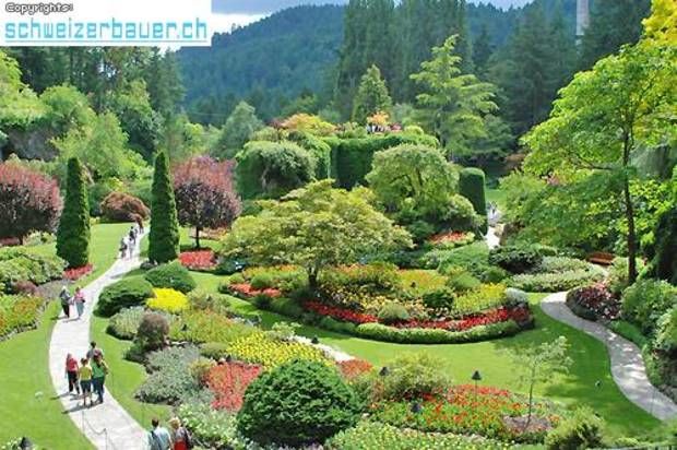 Der Butchart Garden ist ein in einem stillgelegten Kalksteinbruch erstellter Garten. Die Frau des Industriellen Butchart liess für die Nachwelt eine gepflegte, öffentliche Anlage errichten.