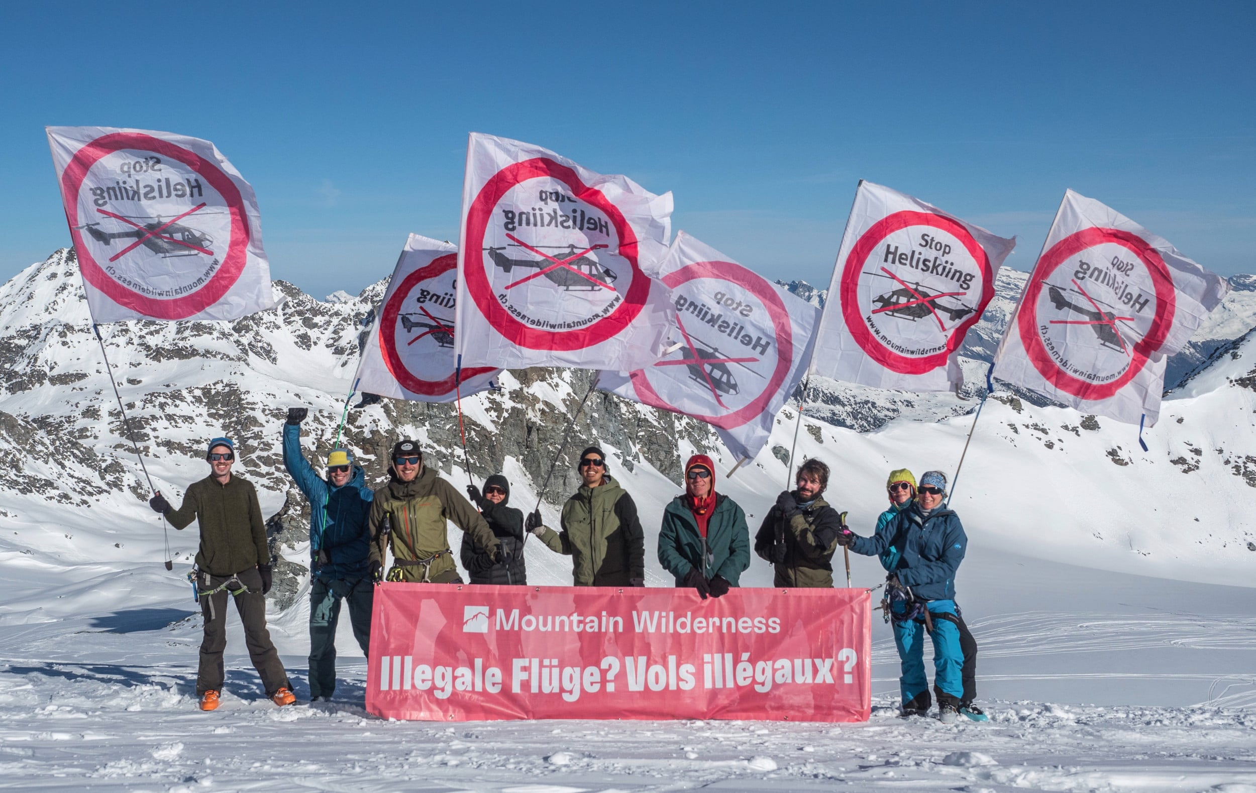 Die Alpenschutzorganisation Mountain Wilderness Schweiz machte am Osterwochenende beim Gebirgslandeplatz Rosablanche VS auf die Verletzung der Schutzziele der «wertvollsten Landschaften der Schweiz» durch Gebirgslandungen aufmerksam.