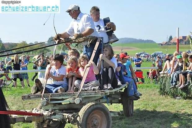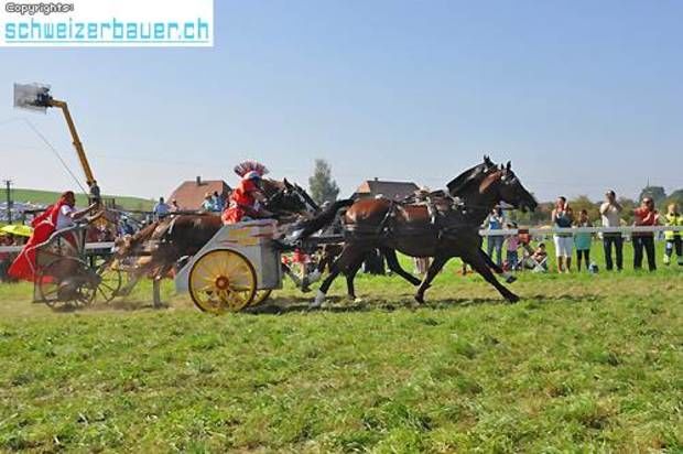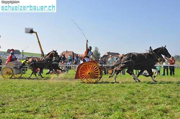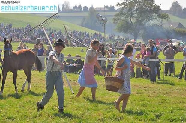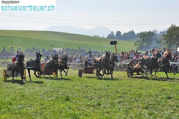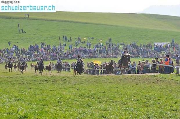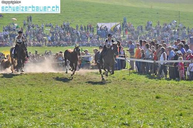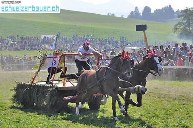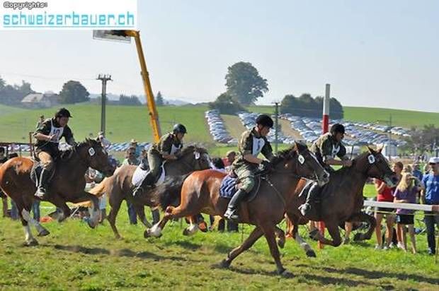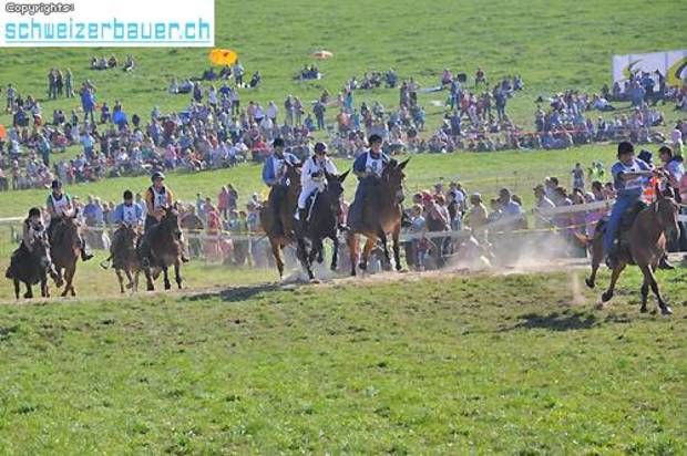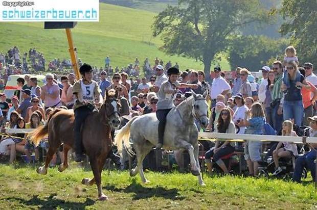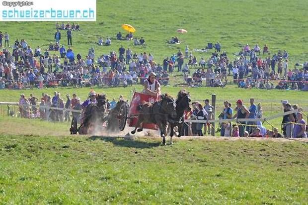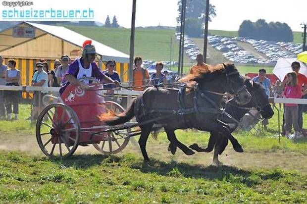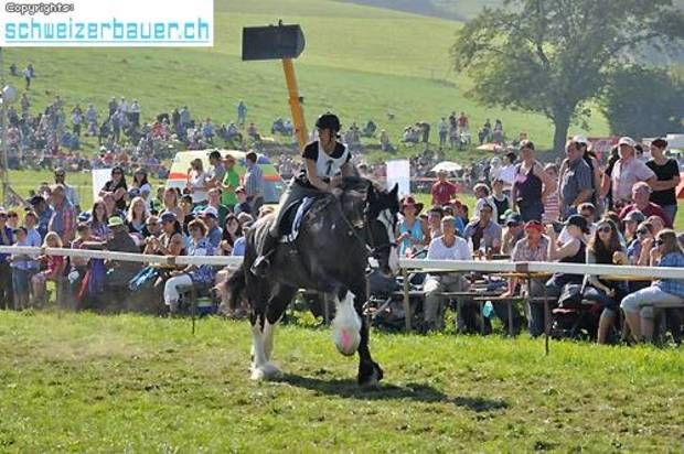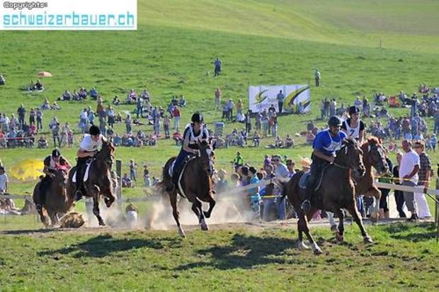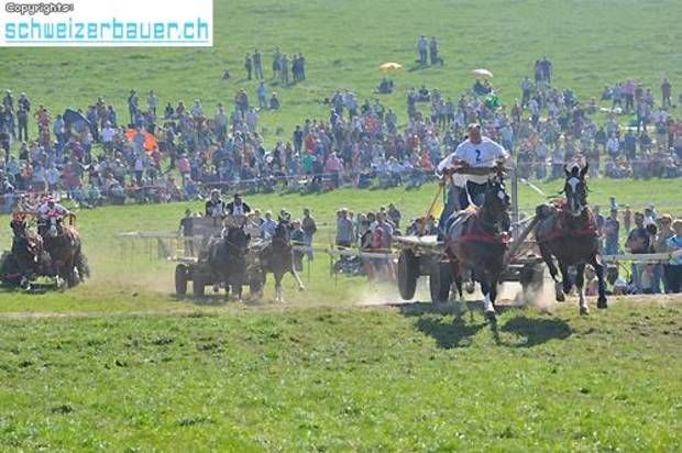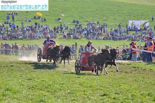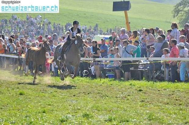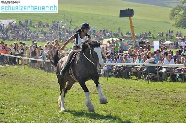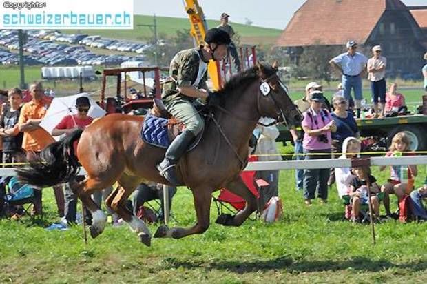 Schwarzenburg BE: 42. Bauernpferderennen Schwarzenburg Pferde, Gladiatoren und Sportskanonen. Vom Pony bis zum Shire-Horse, vom Sportmuffel bis zum Triathlet – am Bauernpferderennen hat es für jeden Platz. Fotos: Pamela Fehrenbach