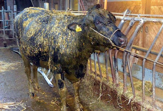 Das Rind war mehr als zwei Meter tief in die Jauchegrube gefallen. Dieses sei in der Gülle geschwommen und habe sich von der Öffnung wegbewegt, schreibt die Berufsfeuerwehr Bern in einem Communiqué. Dies habe die Rettungsaktion erschwert, da auch die Retter wie das Rind in der Gülle schwimmen mussten. Die Schachtöffnung von 80 auf 80 Zentimeter war für die Rettungsaktion ein zusätzliches Hindernis.