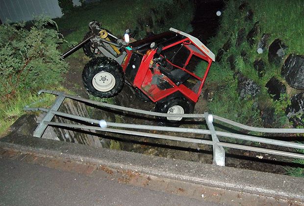 Ein spektakulärer Unfall ereignete sich am Samstagabend in der Nähe von Gais AR. Das landwirtschaftliche Fahrzeug kollidierte mit einem Brückengeländer und stürzte schliesslich in den Bach.