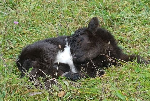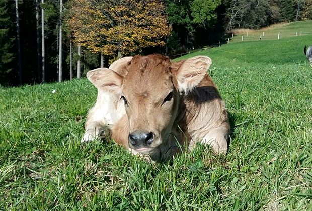 Sonnenstrahlen wärmen und heitern das Gmüt auf. Diese wohlige Eigenschaft der Sonne schätzen nicht nur wir Menschen, sondern auch die Kälblein.
