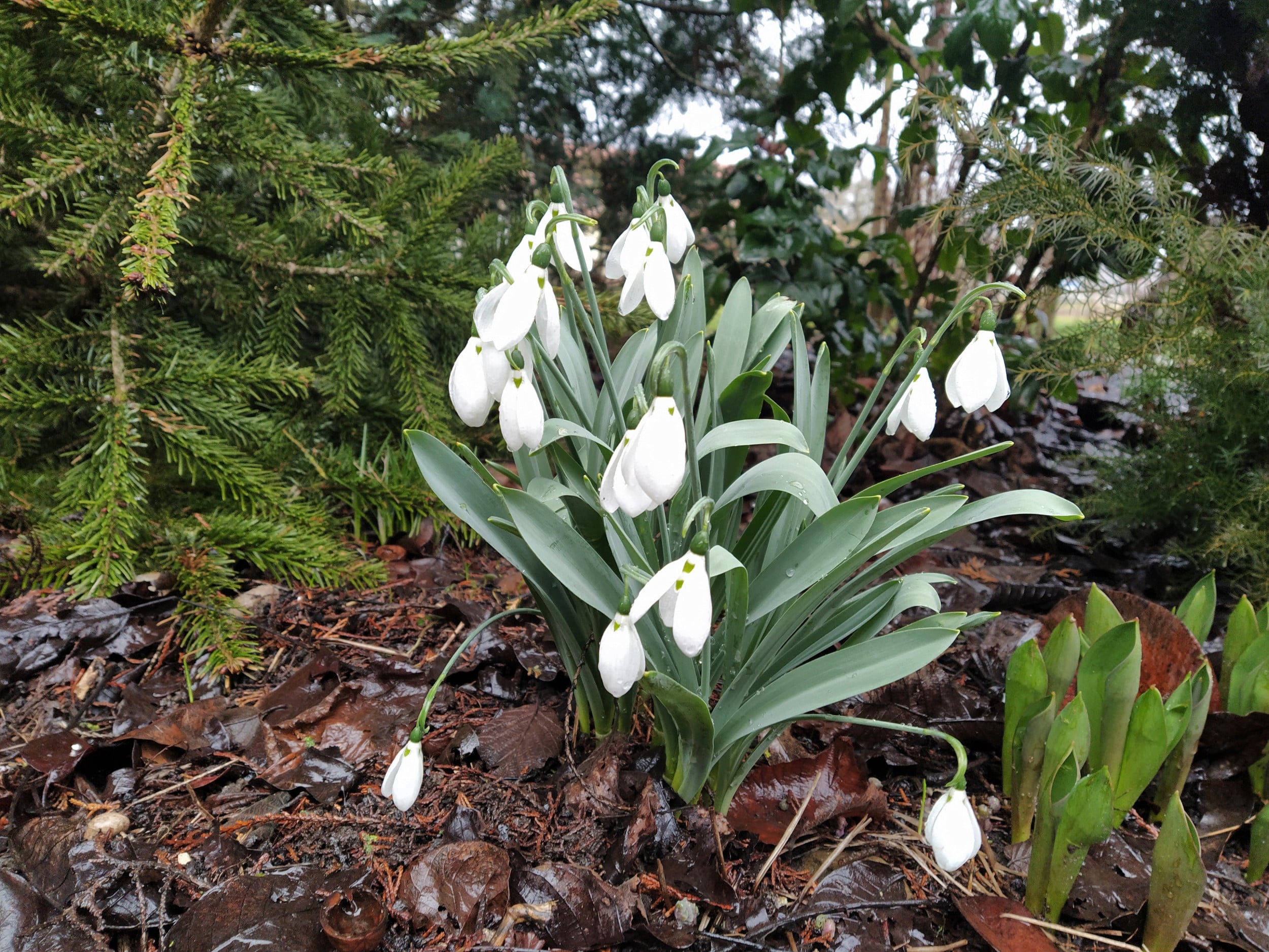 Schneeglöcklein gedeihen auch bei Regenwetter.