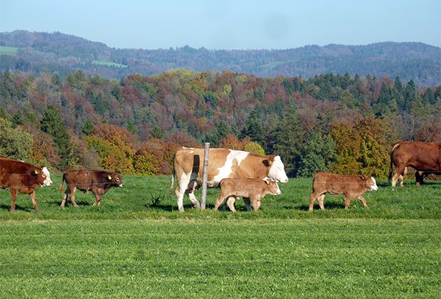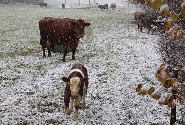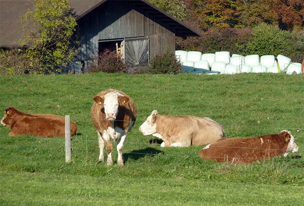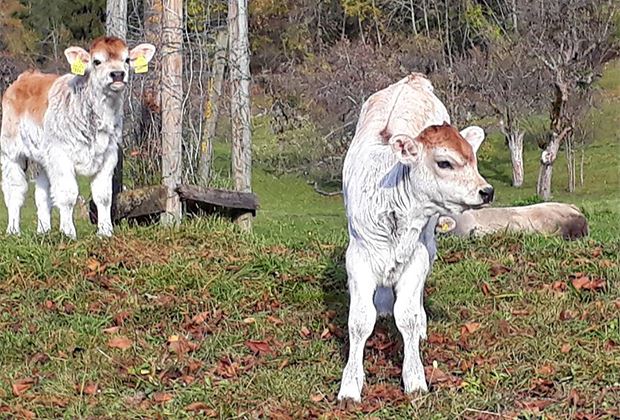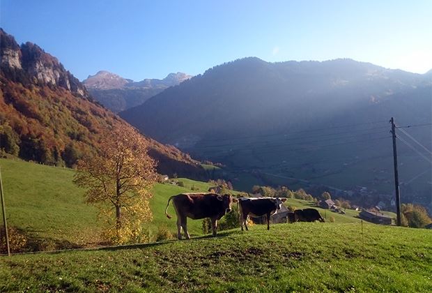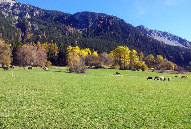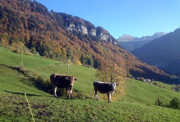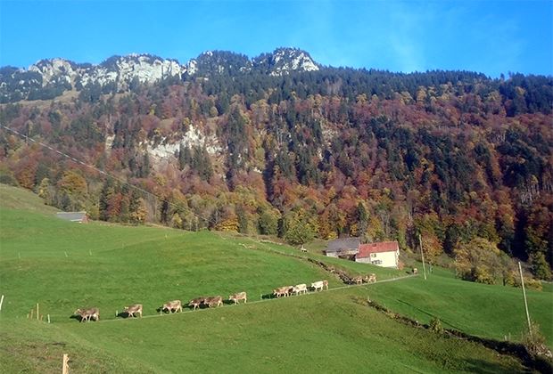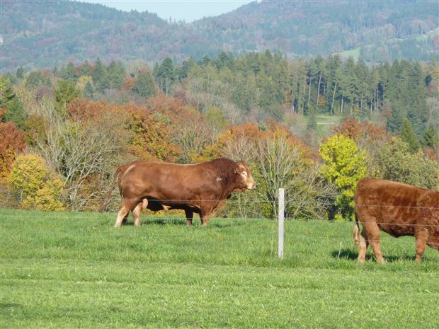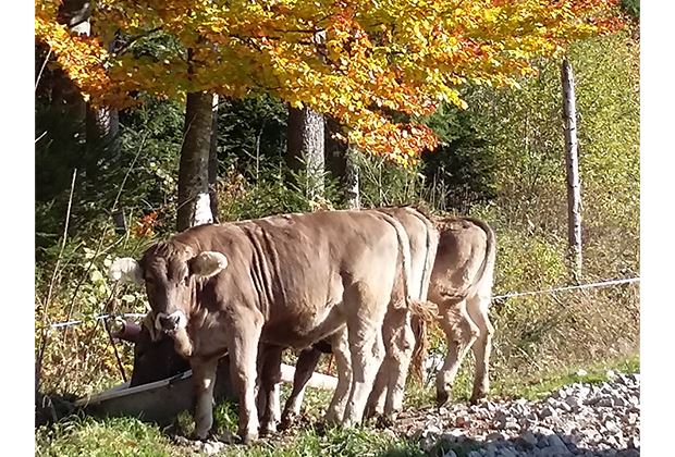 Auch die Rinder auf der Nachbarweide geniessen den farbigen Herbst.