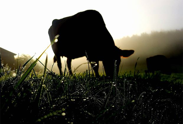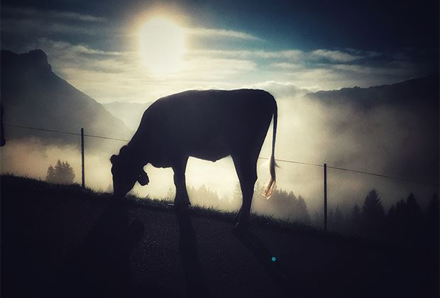 Mystische Nebelschwaden umgeben das Rind im Schangnau BE.