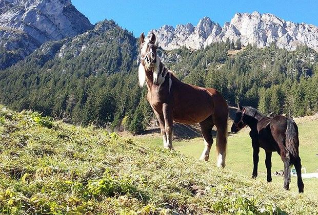 Wie professionelle Models posieren die beiden Pferde in Matten BE.