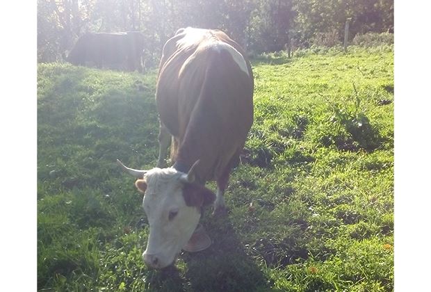 Diese Kuh geniesst die herrlich wärmenden Sonnenstrahlen im Herbst.
