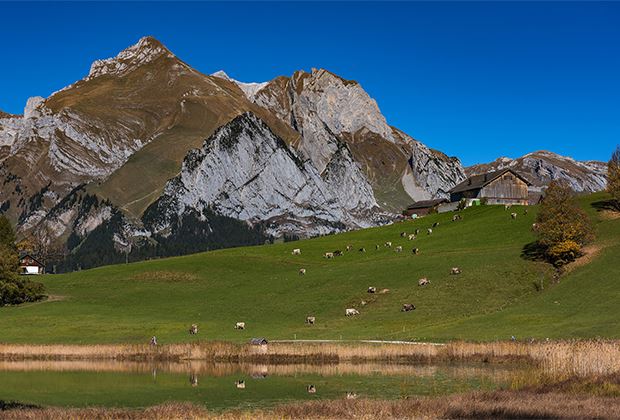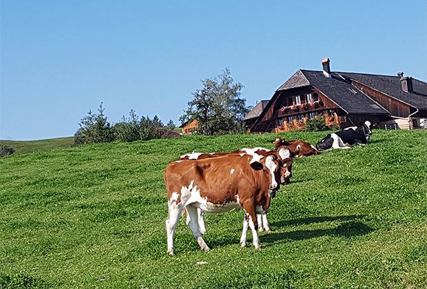 Vor diesem typischen Emmentalerhaus lässt es sich herrlich grasen.
