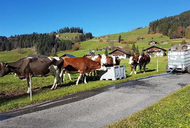 Dieses Bild hat Karin Affolter im Auftrag ihres Schwiegervaters an den Schweizer Bauer geschickt. Auf dem Bild sind die Kühe von Familie Wölfli aus Fahrni bei Thun zu sehen.