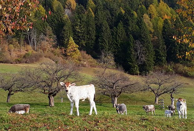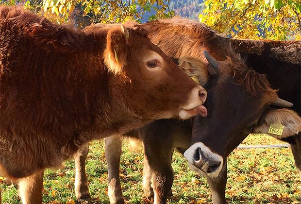 Was für ein goldener Herbst. Während wir uns an den noch wärmenden Sonnenstrahlen erfreuen durften, genoss offensichtlich auch das Vieh die schönen Herbsttage auf den Weiden.