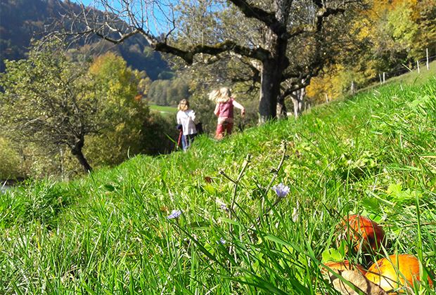 Auch die Jüngsten geniessen das schöne Herbstwetter in Cazis GR.