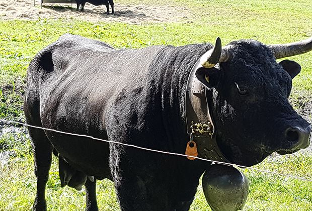 Muni Clemens geniesst es, auf der Weide zu sein.