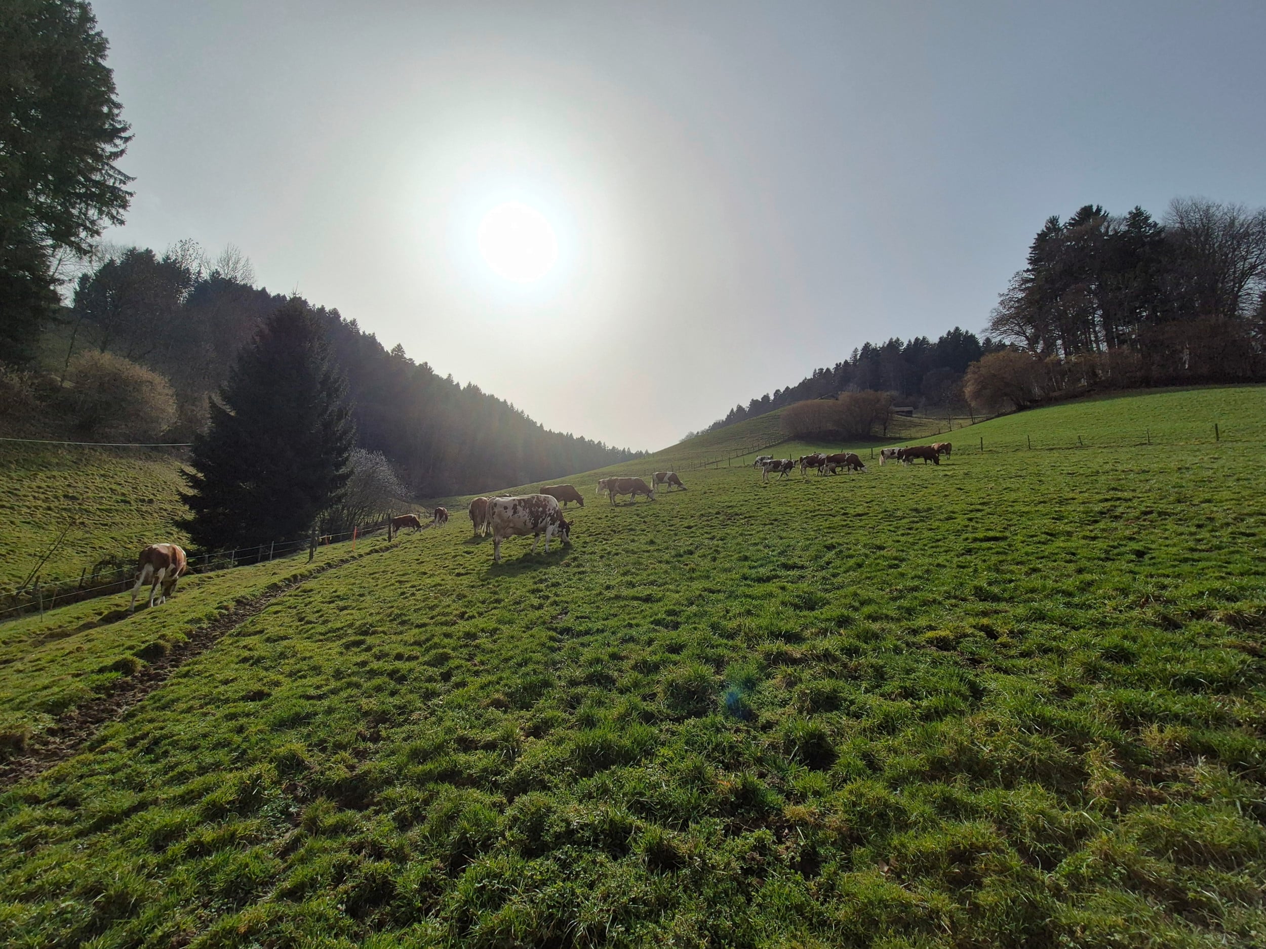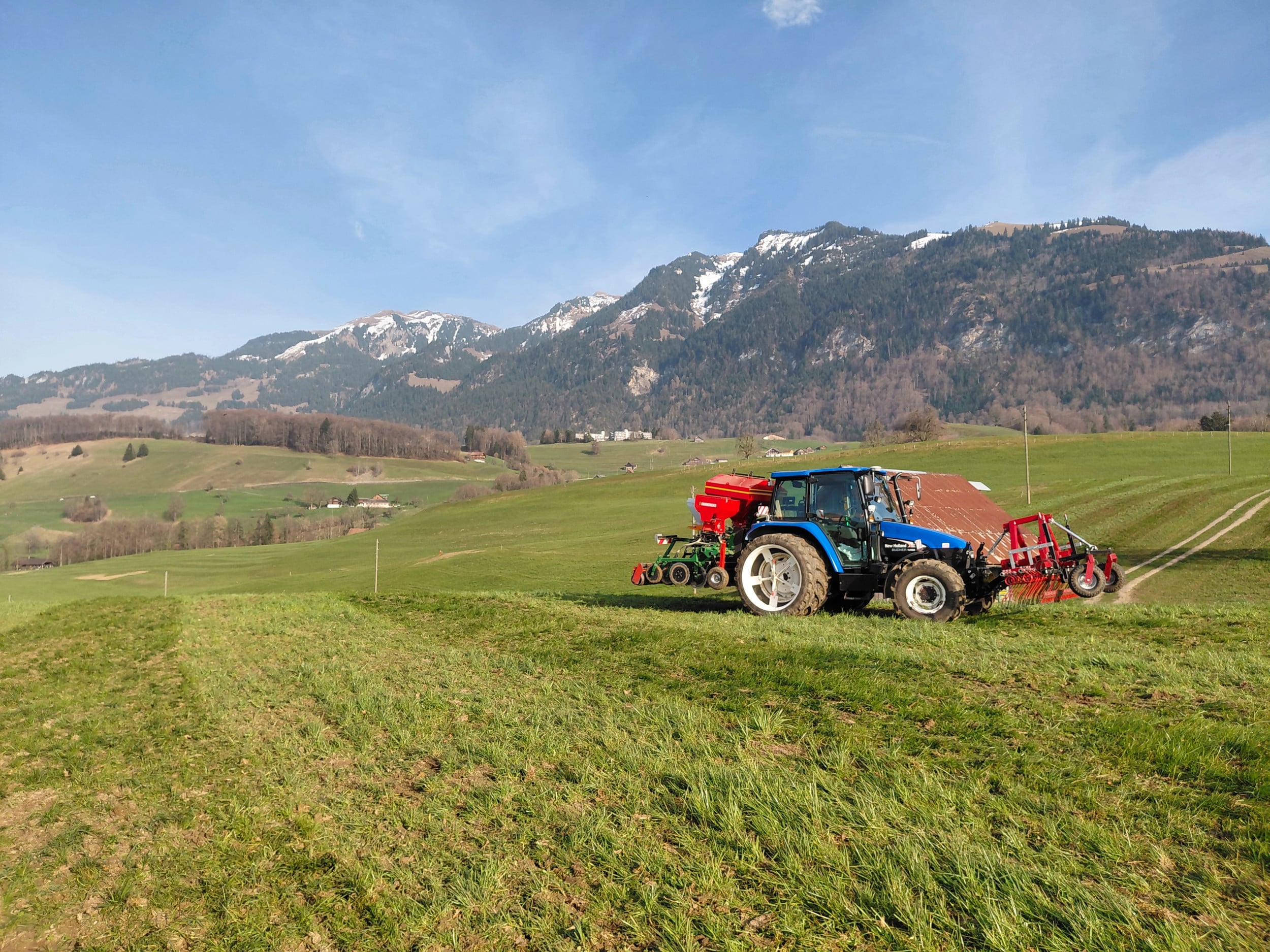 Zunächst werden Äste, Steine und Maulwurfshügel entfernt, die sich über den Winter angesammelt haben. Anschliessend werden beschädigte Grasnarben ausgebessert und bei Bedarf nachgesät. Eine gute Pflege fördert dichte, gesunde Bestände und sorgt dafür, dass die Tiere hochwertiges Futter finden. Gleichzeitig wird darauf geachtet, Bodenverdichtungen zu vermeiden und die Flächen möglichst schonend zu befahren.