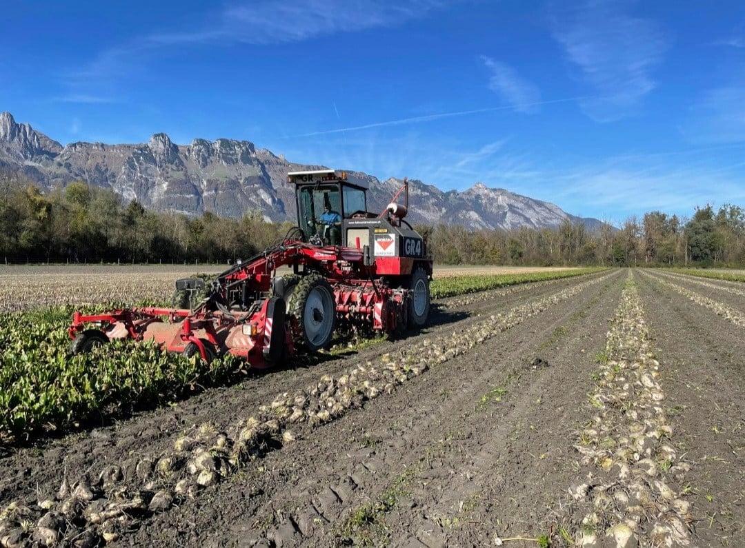 In der Schweiz sind Zuckerrüben eine wichtige Kulturpflanze für die Zuckerproduktion. Die Ernte beginnt je nach Wetter und Region meist ab Oktober. Landwirtinnen und Landwirte setzen auf moderne Maschinen, um die Rüben effizient aus dem Feld zu holen.