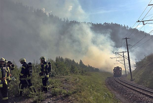 Gegen 17.10 Uhr wurde in der Ruinalta bei Trin GR eine starke Rauchentwicklung entdeckt. Grund: In einem schwer zugänglichen Gebiet war ein Wald- und Wiesenbrand ausgebrochen. Die rund 60 Einsatzkräfte und ihr Material mussten mit Schienentraktoren der Rhätischen Bahn (RhB) an den Brandort bei der Örtlichkeit Isla Bella transportiert werden.