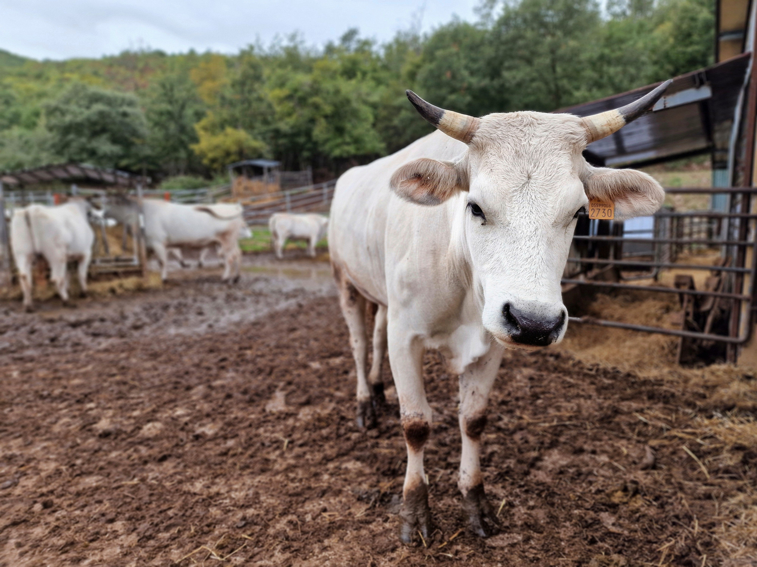 Die Brüder Daniele und Dario Mecarelli züchten diese Rinder. Gemeinsam führen sie den Hof Agricola Collivecchi, der sich im Südwesten von Umbrien in einer hügeligen Landschaft befindet. Zum Betrieb gehören 440 ha Fläche, darunter 270 ha Wald für die Holzproduktion, 10 ha mit 3’000 Olivenbäumen für die Herstellung von Öl, ausserdem 5ha Kastanienbäume, und auf 10 ha ist man dabei, einen Trüffelwald anzulegen.