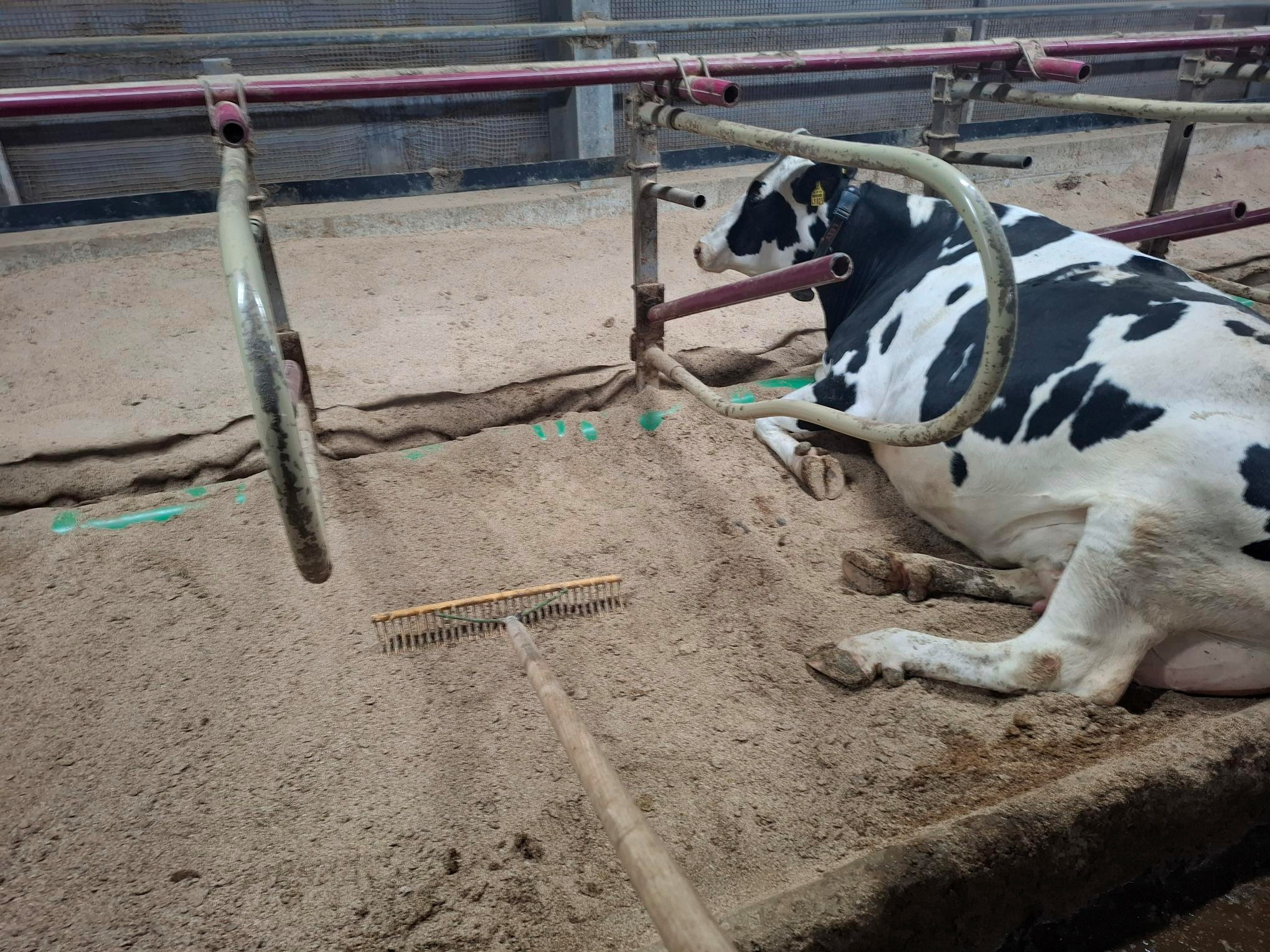 «Ich bin begeistert davon. Es ist enorm, wie viel Arbeitszeit wir einsparen.» Die Boxen, die mit Holzpelletabrieb (wird bei einem Pelletwerk bezogen) eingestreut sind, werden morgens und abends mit einem Gartenrechen in wenigen Minuten zurechtgemacht. Der Keimdruck sei sehr gering, die Kühe würden immer eben und trocken liegen. Die Liegeboxen werden einmal pro Woche mit einer Rückenspritze flüssig desinfiziert.