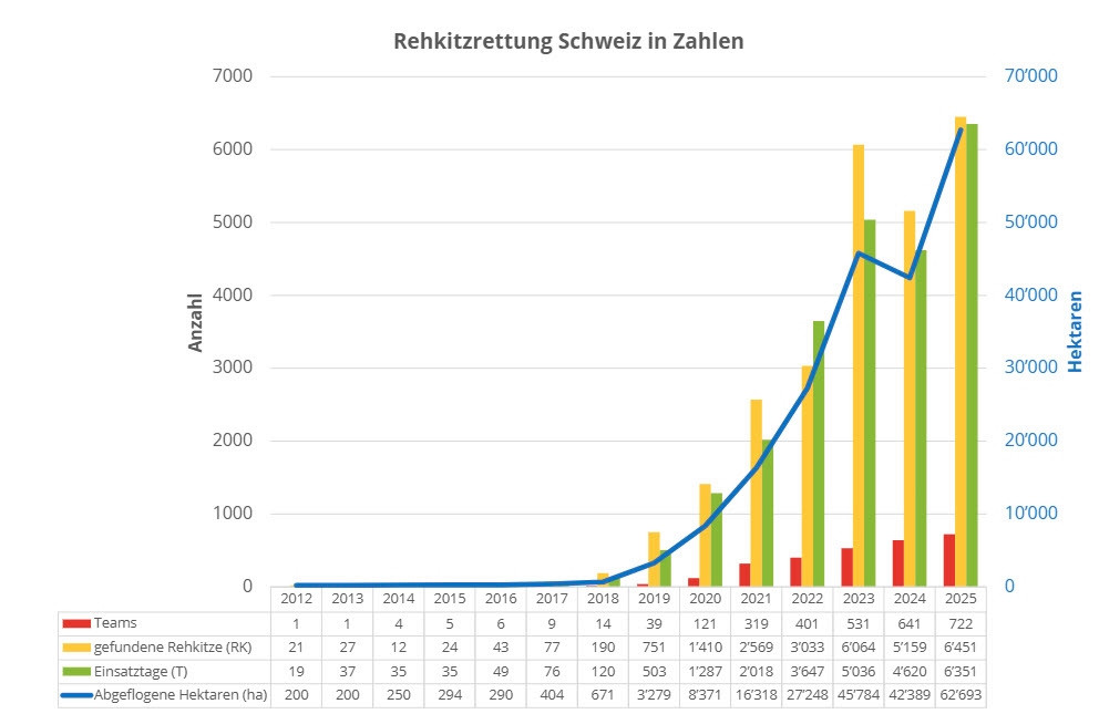 In der Saison 2025 wurden in der Schweiz mehr als 6400 Rehkitze gefunden. Vor sechs Jahren waren es erst 751.
