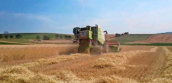 Geerntet wird mit dem Lohnunternehmer aus dem Dorf.
