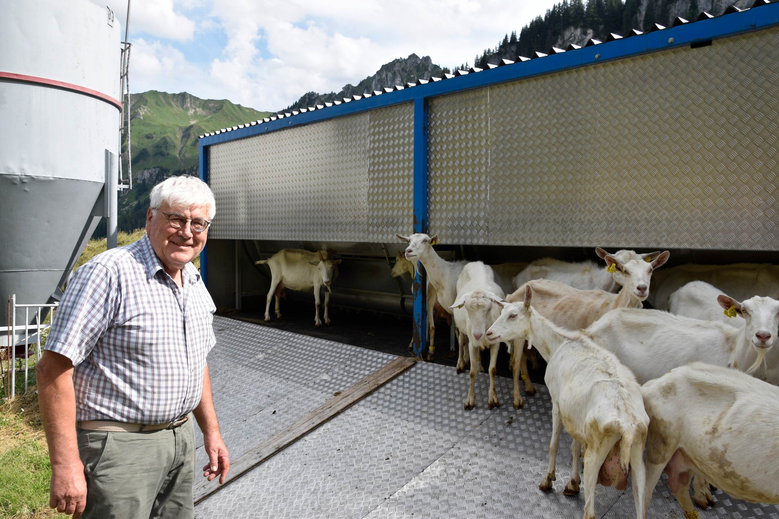 Michel Grivel hinter dem Melkstand für seine Ziegen, den er im Winter auch auf dem Heimbetrieb in St-Paul-en-Chablais nutzt.