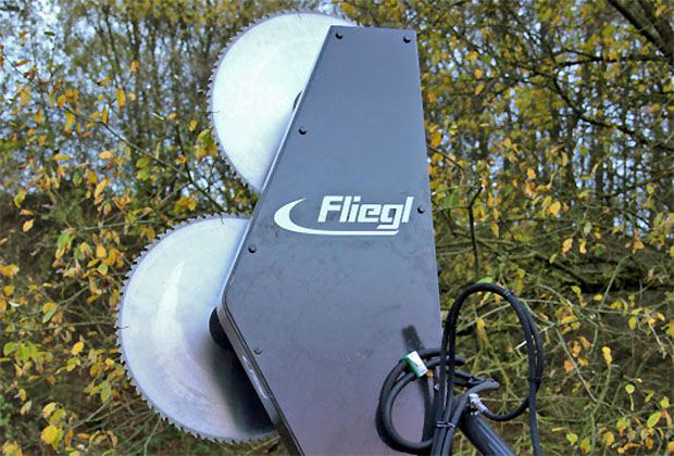 Die Säge mit hydraulischem Antrieb ist mit drei grossen Spezial-Sägeblättern ausgestattet, die laut Fliegl einen starken und sauberen Schnitt garantieren. Der Aktionsradius der Astsäge ist ansehnlich: Ihre Arbeitsbreite beträgt 2,15 m. Ihr Ausleger kann seitlich um 1,1 m ausgeschoben werden. Das bedeutet, dass das Trägerfahrzeug am Strassenrand fahren kann, während die Astsäge 1,2 m vom Strassenrand entfernt schneidet. Der Schnittwinkel der Astsäge ist stufenlos einstellbar. Laut Fliegl könne bei der Arbeit mit der Astsäge mit einer Arbeitsgeschwindigkeit von bis zu 8 km/h gefahren werden.
