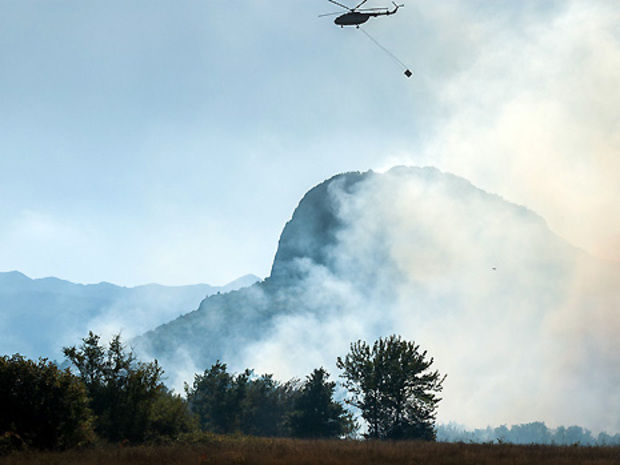 Im 200 Kilometer weiter südöstlich gelegenen Komin vernichteten die Flammen rund 1000 Hektar Land. Unterstützt von Löschflugzeugen bemühte sich die Feuerwehr mit aller Kraft darum, bedrohte Ortschaften vor den Flammen zu schützen.