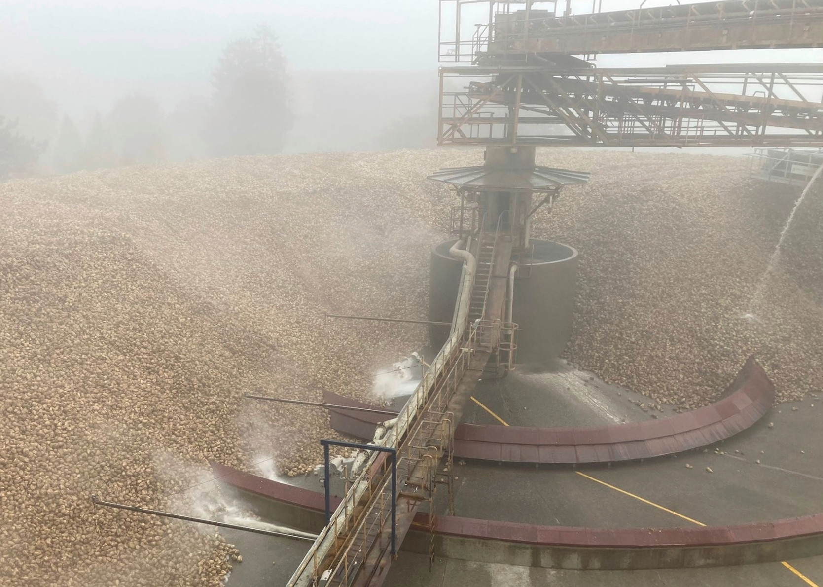Am vorletzten Samstag führte eine Störung dazu, dass am Wochenende 5’000 bis 8’000 Tonnen Rüben weniger als geplant den Maschinen zugeführt werden konnten, wodurch die Anlieferungen reduziert werden mussten. In Frauenfeld TG wurden vom 6. bis 12. Oktober, also in der vierten Woche der Kampagne, 62’627 Tonnen Rüben verarbeitet.