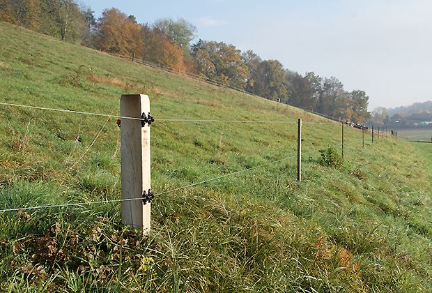 Landwirten ist nicht nur die Sicherheit ihres Zaunes wichtig, sondern sie wollen auch einen Zaun, der beständig ist und an welchem sie nicht dauernd Pfähle auswechseln oder Drähte reparieren müssen. «Der Zaun muss währschaft, stabil und langlebig sein» , sagt Lukas Maurer in Niederwil bei Frauenfeld. Er hält seine Galtkühe im Sommer auf einer Weide etwa einen Kilometer vom Hof entfernt. Den bisherigen alten Zaun, der teilweise noch aus Stacheldraht bestand, hat er durch einen robusten 600 m langen elektrischen Festzaun ersetzt, wobei er sich von der Zaunfirma «Zaunteam» beraten und helfen liess.