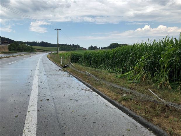 Das Fahrzeug durchbrach in der Folge den Zaun am Fahrbahnrand und geriet in ein angrenzendes Maisfeld, wo es schliesslich zum Stillstand kam. Der Lenker wurde beim Unfall leicht verletzt, konnte das Fahrzeug aber selbstständig verlassen. Er wurde nach der Erstversorgung vor Ort durch ein Ambulanzteam zur Kontrolle ins Spital gebracht.