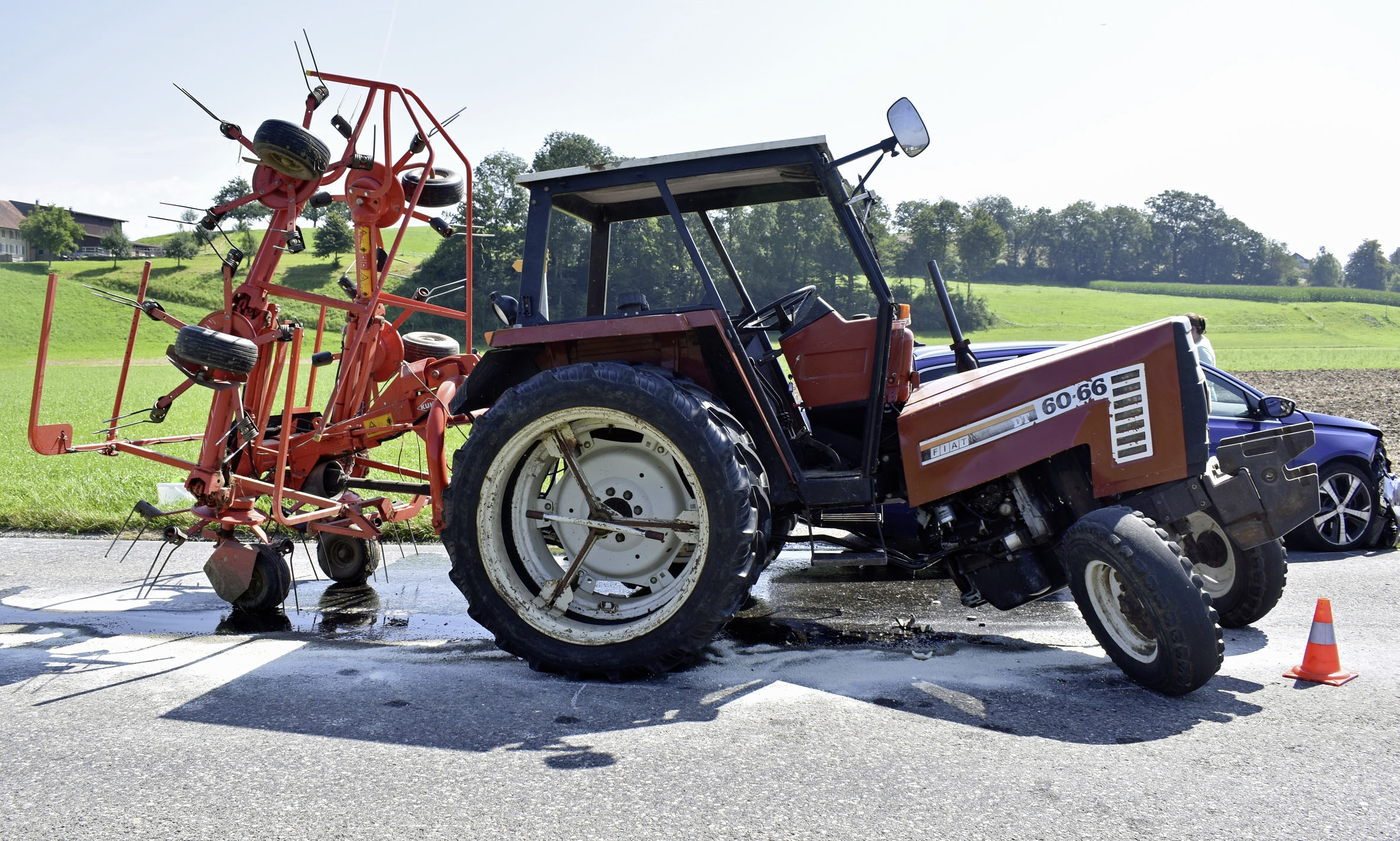 Zum Unfall kam es, als der Traktorfahrer nach links in einen Feldweg abbiegen wollte. Gleichzeitig überholte ein Auto das landwirtschaftliche Gefährt, so dass es zur Kollision kam. Die ausländische Autofahrerin habe ein Bussendepot hinterlegen müssen, teilte die Luzerner Polizei mit.