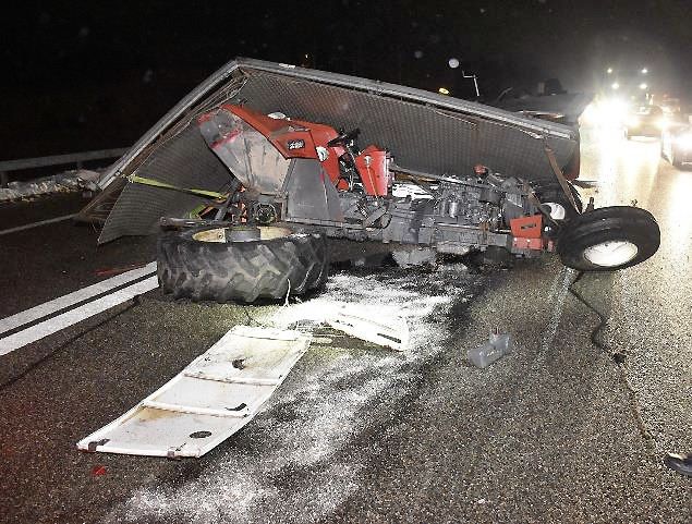 Gemäss Angaben der Kantonspolizei Solothurn war der Autofahrer kurz vor 17.30 Uhr in Richtung Bern unterwegs. Auf dem angekoppelten Anhänger war ein Traktor geladen.