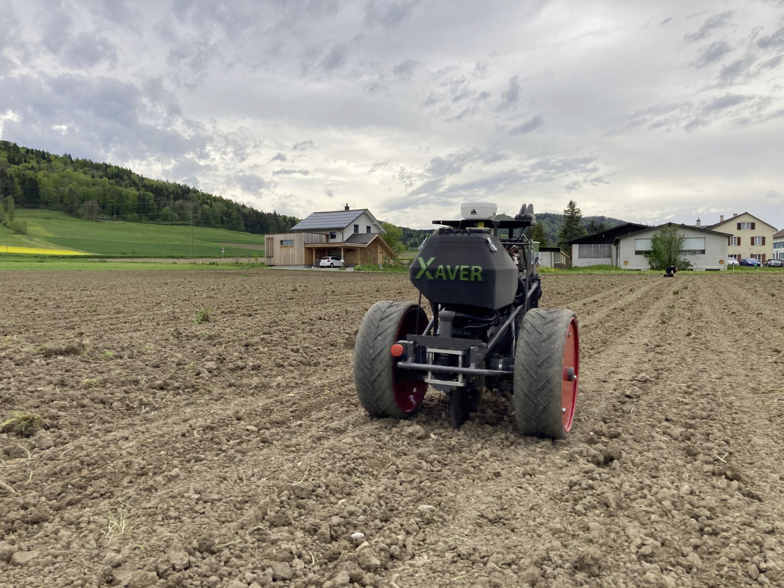 Zu den vorgestellten Neuerungen, die bereits ausprobiert wurden, gehörte ein elektrisch betriebener Roboter, der für die Maissaat eingesetzt werden kann. Für den Versuch wurde die Ernte mit einer Aussaat nach der herkömmlichen Methode verglichen. Kann im Maisanbau ein Säroboter mit herkömmlichen Sämaschinen mithalten? Diese Frage stellte sich Nils Zehner von der Swiss Future Farm, als er sich Gedanken zum Robotik-Aussaat-Versuch beim Mais machte.