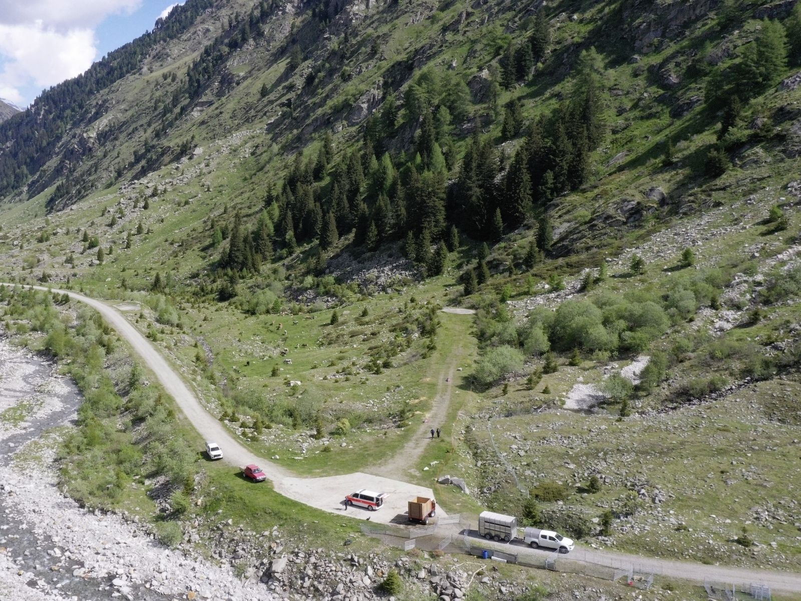 Nach Polizeiangaben war die Bäuerin am Samstagvormittag mit ihrem Mann dabei, auf offenem Weidegebiet ihre Schafe für die Alpsömmerung aus einem Fahrzeug zu entladen.