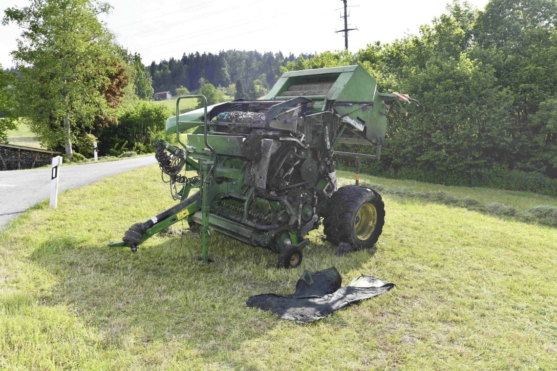 Ein 67-jähriger Mann überführte mit seinem Traktor einen landwirtschaftlichen Arbeitsanhänger mit einer Ballenpresse von einer Wiese zur nächsten. Während der Fahrt auf der Nebenstrasse vom Weiler Scheftenau Richtung Weiler Näppis bemerkte der Mann Rauch aus der Ballenpresse.