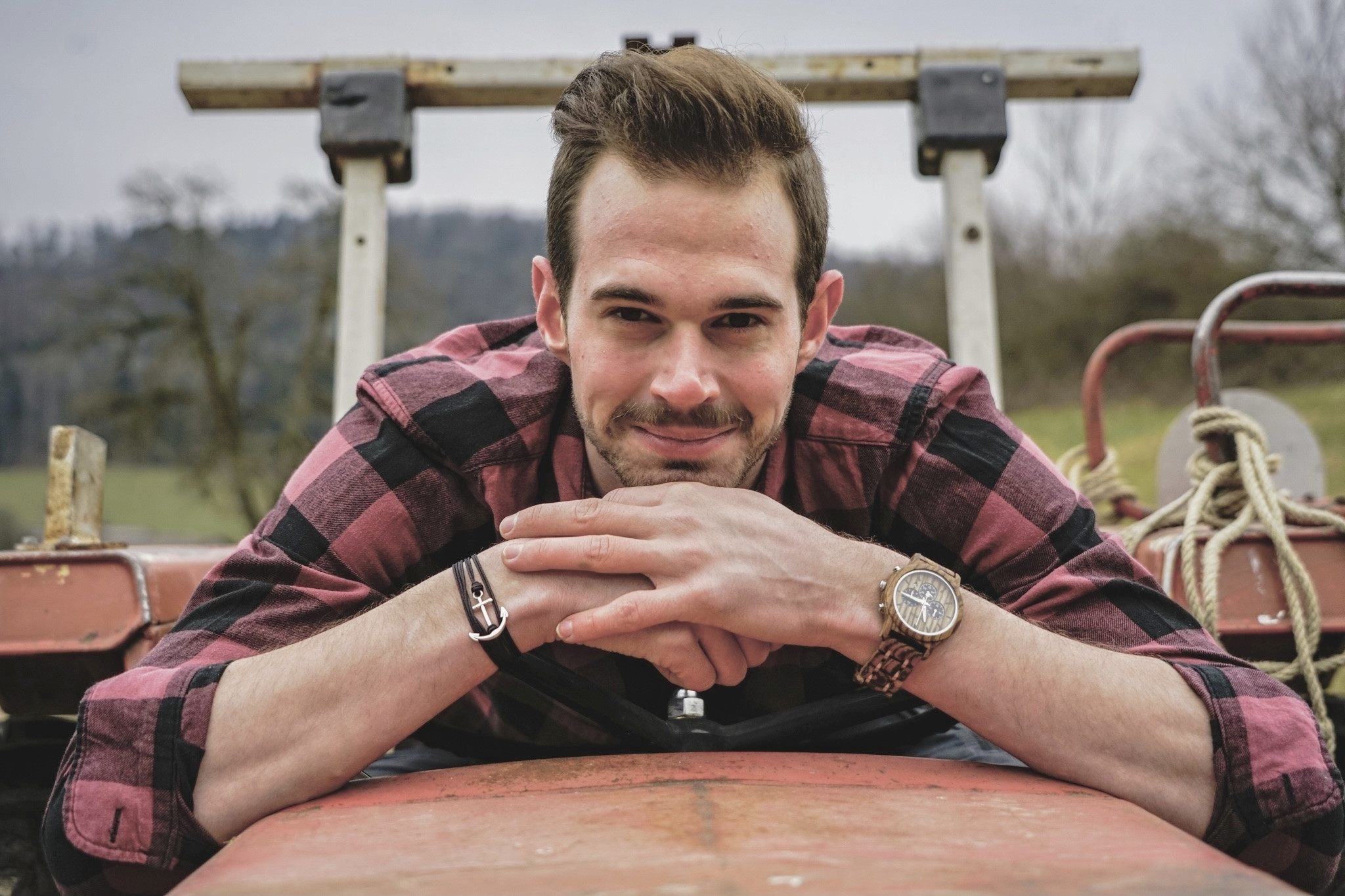 Kaum in der Hofeinfahrt parkiert, empfängt einem schon ein hochgewachsener, schlanker junger Mann mit breitem Lachen im Gesicht. So sympathisch habe ich mir den «Jammeribauer» nicht vorgestellt, obwohl ich ihn von den netten Internetbildern her sofort wiedererkenne. Der 28-jährige Betriebsleiter und Inhaber des Milchbauernhofs Heurüti in der Gemeinde Elgg begrüsst mit festem Handschlag: «Ich bin Jörg! Bist du nicht der Vater von Leonardo?»