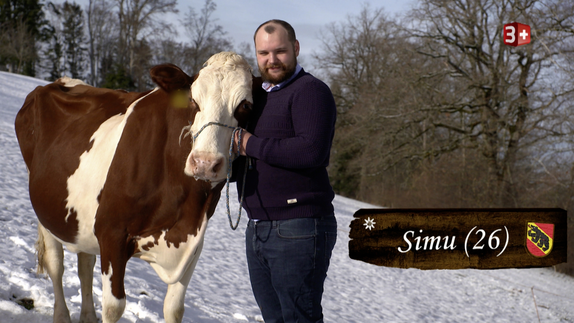 Der 26-jährige Simon ist ein lebensfroher und lustiger Mann. Der Hof ist seit 400 Jahren im Familienbesitz. Der Biobetrieb umfasst 21 Hektaren Land. Den Betrieb führt noch sein Vater. Simu hilft oft mit und möchte den Hof später einmal weiterführen. Derzeit arbeitet er aber noch als Lastwagenfahrer. Er transportiert Milch.