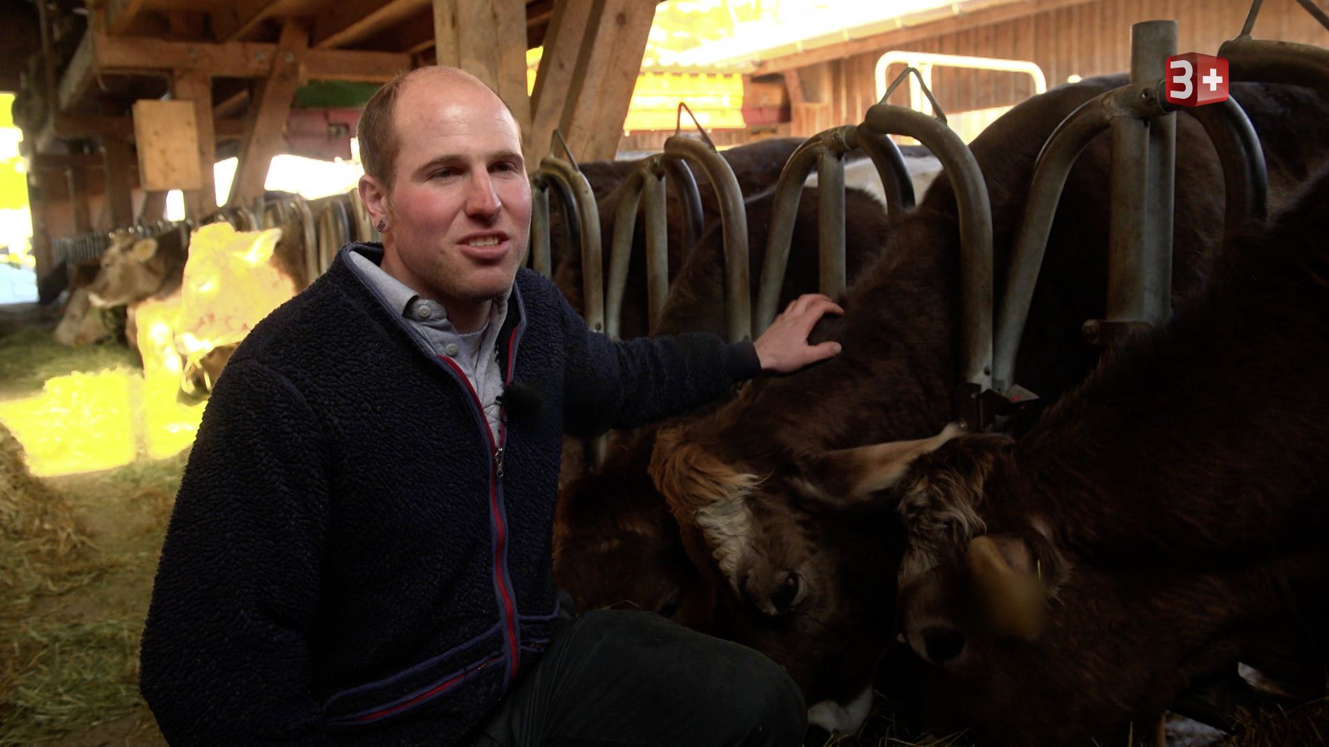 Der 29-jährige Ramon betreibt einen Mutterkuhbetrieb mit Aufzucht. Den Hof hat der gelernte Zimmermann und Landwirt 2018 gepachtet. Nebenbei arbeitet der humorvolle Appenzeller im Tiefbau. Die Tiere sind für ihn sehr wichtig. «Man arbeitet mit ihnen, deshalb kennt man auch alle ihre Namen», sagt der Mutterkuh-Halter. Wichtig ist für ihn auch der Umgang mit den Tieren. Behandle man sie korrekt und ruhig, erhalte man das von ihnen auch zurück, erklärt er.