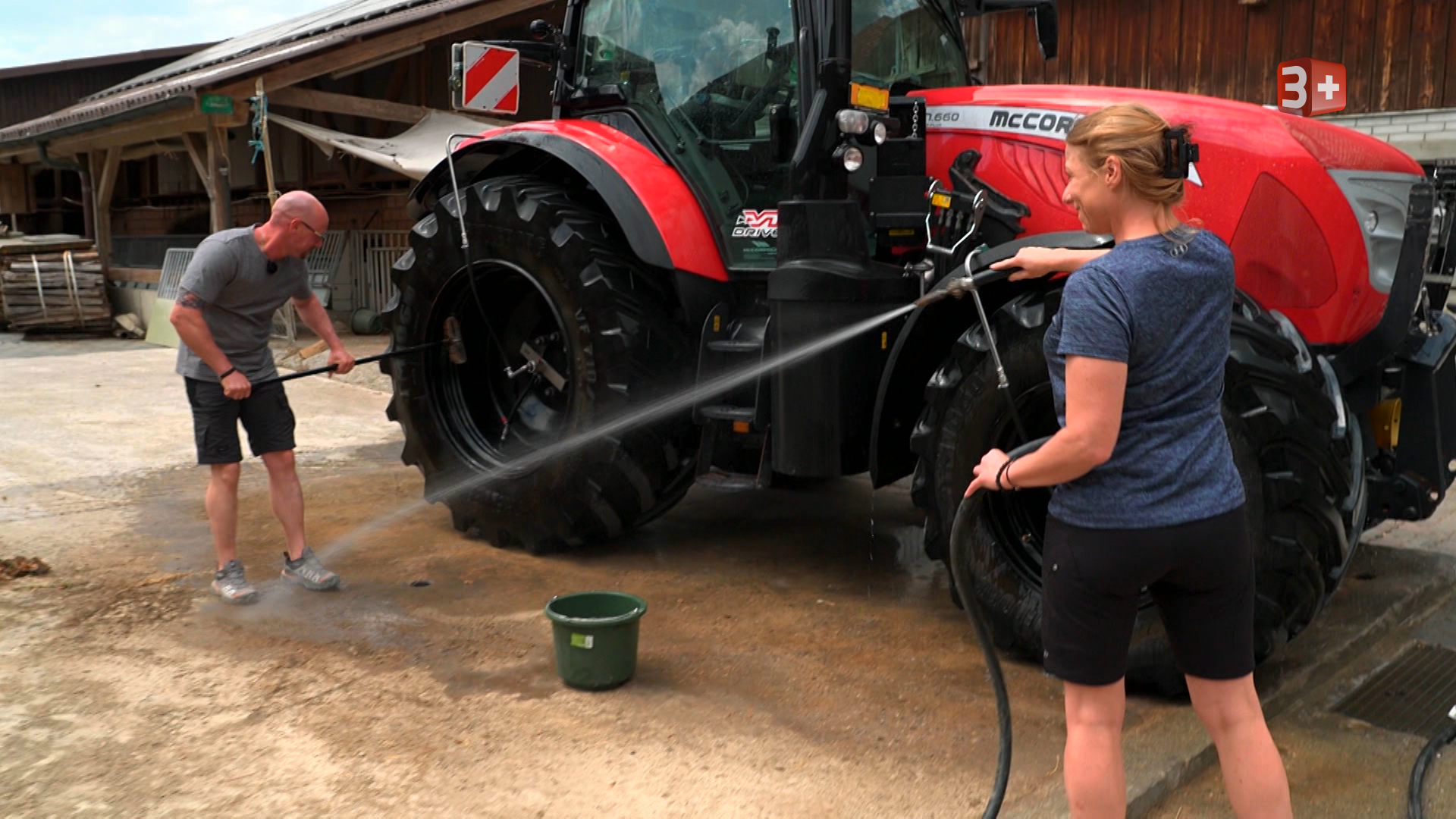 Ein von Anfang an sehr wertschätzendes Miteinander erlebe ich bei Samuel und Jolanda. Das Traktorwaschen war definitiv ein Icebreaker – zwei grosse Kindsköpfe im vollen Element. Etwas Sorgen mache ich mir nur um die Sauberkeit des Traktors… aber der war in diesem Moment wohl zweitrangig. Habt ihr das gesehen…? Na, das ging haarscharf an einem Kuss vorbei!