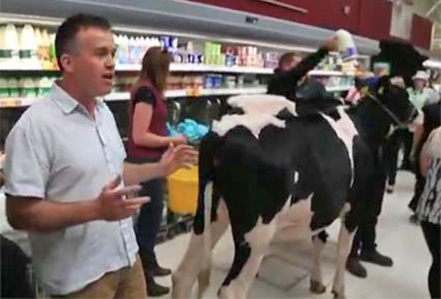 In mittelenglischen Stafford haben 70 Personen mit zwei Kühen in einem Supermarkt der Kette Asda demonstriert, berichtet die englische Zeitung The Guardian. Sie beklagten sich über den niedrigen Milchpreis und ihre schwierige finanzielle Lage. Diese Aktion folgt einer Protestwelle im ganzen Land. Unter anderem führte die sogenannte Milk Trolley Challenge (übersetzt: Milch-Einkaufswagen Challenge) dazu, dass Milchbauern die gesamte Milchtheke in manchen Supermärkten geräumt haben.