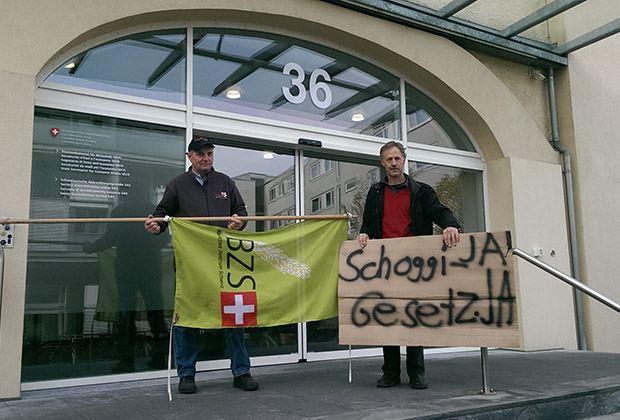 Am Eingang hielten sie eine BZS-Fahne in die Höhe und stellten sich mit einem Schild auf. Darauf stand: „Schoggigesetz JA“. In der Tat ist es das Seco, welche die Verhandlungen innerhalb der WTO koordiniert. Dort hat die Schweiz nach Informationen des „Schweizer Bauer“ angeboten, das Schoggigesetz abzuschaffen. Auf dieser gesetzlichen Grundlage wurden in den letzten Jahren 70 Millionen Franken eingesetzt, um für die verarbeitende Industrie den Nachteil teurerer Preise für Schweizer Rohstoffe (z. B. Milchpulver, Butter, Mehl) auszugleichen. Damit in der Schweizer Schokolade, die exportiert wird, eben auch Schweizer Milchpulver drin steckt. Heuer sind es 95,5 Millionen Franken.