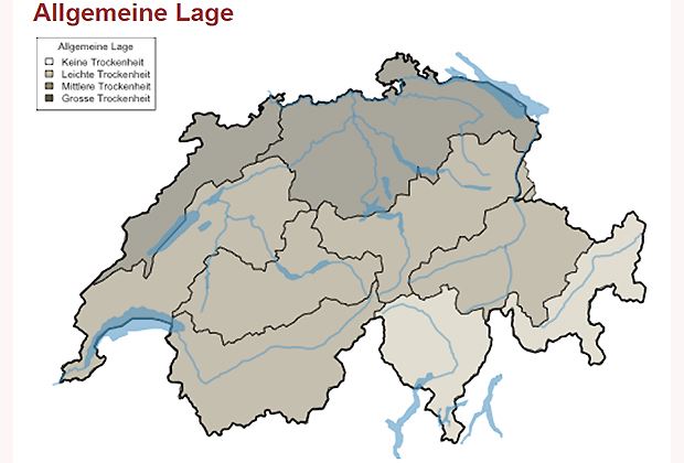 Und auch ein Blick auf die aktuellen Ergebnisse des Nationalen Forschungsprojektes Drought-CH, bei dem die ETH Zürich, die Universität Zürich, das WSL, Meteo Schweiz und die Universität Freiburg im Breisgau beteiligt sind, bringt ähnliches zutage. Auch dort zeigt sich ein verbreitetes Niederschlagsdefizit in der gesamten Schweiz.