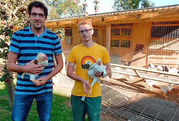 Einen anderen Weg geht die Bioeierhandelsfirma Hosberg. Sie setzt auf die Junghahnaufzucht. Beni Reinhard aus Rüti ZH und  Roman Clavadetscher aus Malans GR sind zwei ihrer Produzenten. Clavadetscher ist auch an der Vermarktung der Junghähne  beteiligt. «Nach 14 bis 16 Wochen sind die Hähne schlachtreif», erklärt er.