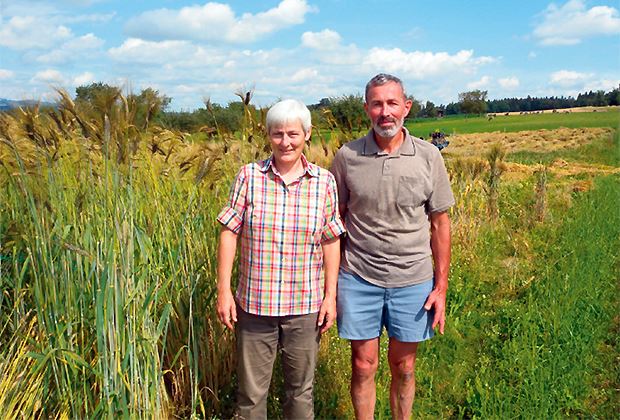 Claudia und Ruedi Künzi stehen am Rand ihres 1000 Quadratmeter grossen Getreideackers etwas oberhalb des Dorfes und prüfen Wachstum und Qualität. Im Oktober haben sie, wie immer in den vergangenen Jahrzehnten, neun verschiedene alte Getreidesorten gesät. Inzwischen reichen die Gerste und der Weizen der Bäuerin bis zu den Schultern.