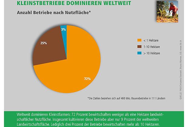 70 Prozent des weltweiten Nahrungsmittelbedarfs wird von Familienbetrieben sichergestellt. Schweizweit machen Familienbetriebe sogar 98 Prozent der landwirtschaftlichen Betriebe aus. Für 40 Prozent der Weltbevölkerung ist die Landwirtschaft Haupteinkommensquelle der Familie.