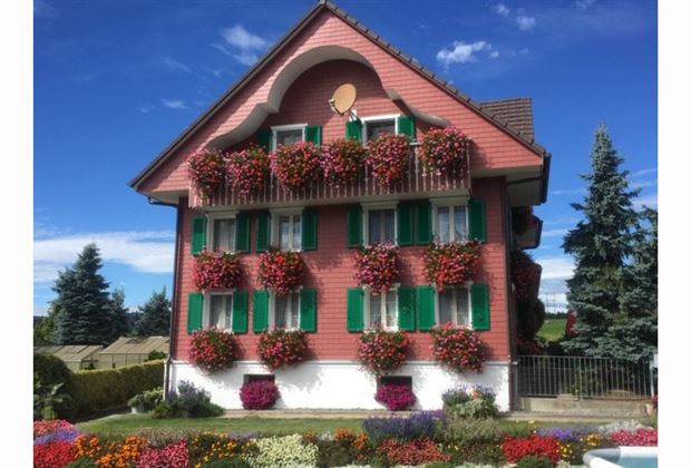 Auf diese Woche haben wir uns auf der Redaktion schon lange gefreut. Denn in dieser Woche haben wir unseren Bildwettbewerb den blumengeschmückten Bauernäusern gewidmet. Die Blumenpracht von Helena Fahrni aus Teuffenthal BE hat sich gegen 36 schöne Konkurrenten durchgesetzt. Herzlichen Glückwunsch zum Sieg! Nicht nur am 1756 erbauten Bauernhaus ragen viele Blumen, auch der Garten blüht traumhaft schön.